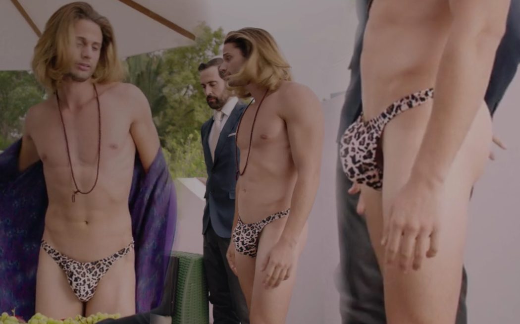 El actor y modelo, que interpreta a Aitor Cardoné en la ficción de Netflix, aparece en tanga, mostrando el culo y un descomunal paquete, en la segunda temporada.