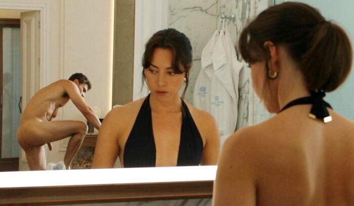 Theo James interpreta a Cameron Babcock, un atractivo y rico treintañero que se aloja junto a su esposa y unos amigos. En el primer capítulo, el personaje sube a la habitación junto a la novia de su compañero de universidad, interpretada Aubrey Plaza, y se cambia de bañador delante de ella. El actor se muestra totalmente desnudo ante la cámara, dejando al descubierto su culo y su pene.