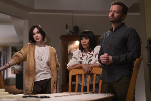 Emy Coligado, Christopher Masterson y Vaughan Murrae aparecen en una imagen del capítulo 1x01 de 'Malcolm: De mal en peor'.