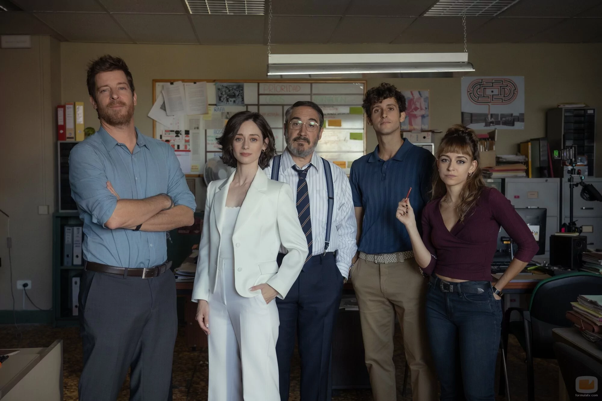 Elena Rivera, Manuel Baqueiro, Alfonso Lara, Lucía Caraballo y Daniel Ibáñez aparecen en una escena del capítulo 1x01 de 'Perdiendo el juicio'.