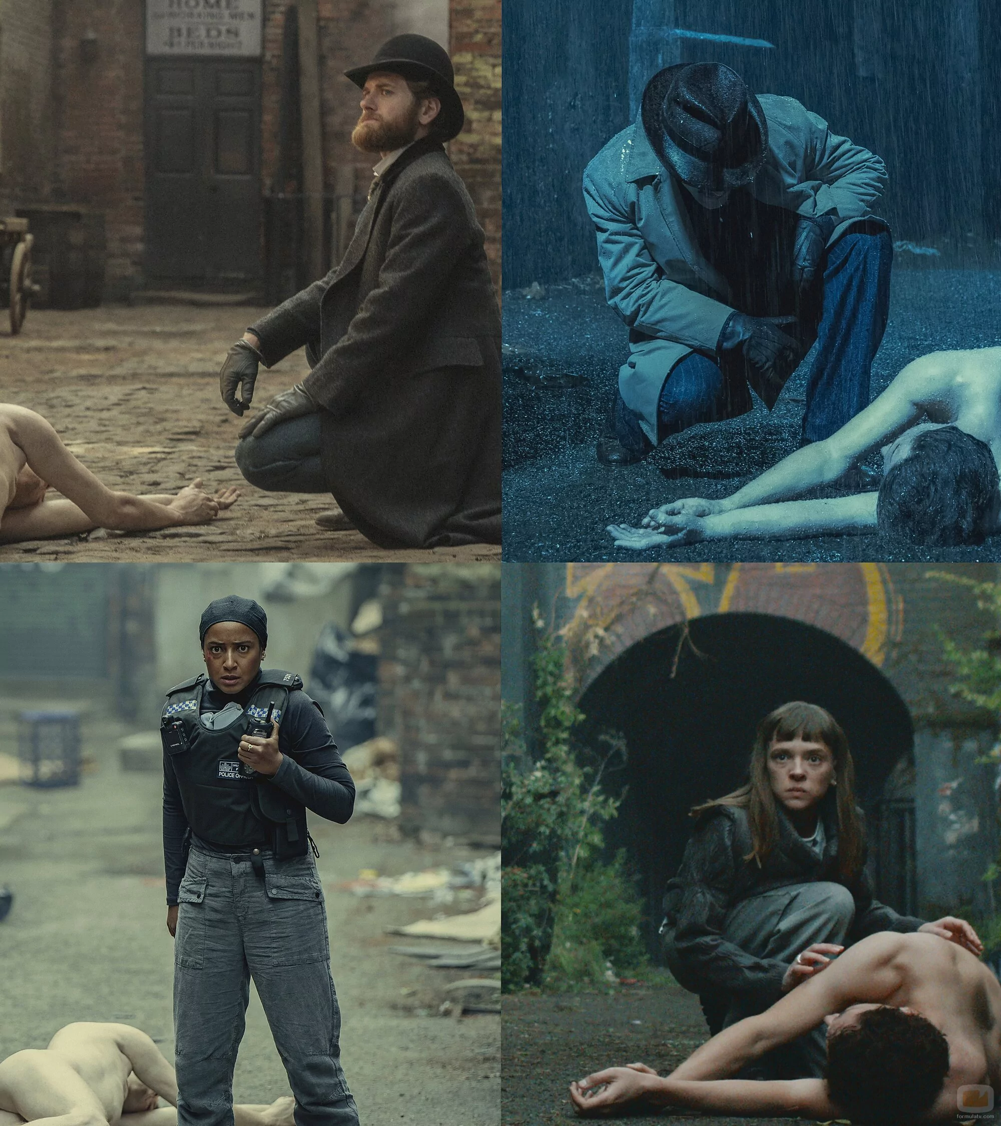 Kyle Soller, Amaka Okafor y Shira Haas aparecen en una foto promocional del episodio 'A su debido tiempo' de la serie 'Bodies'.