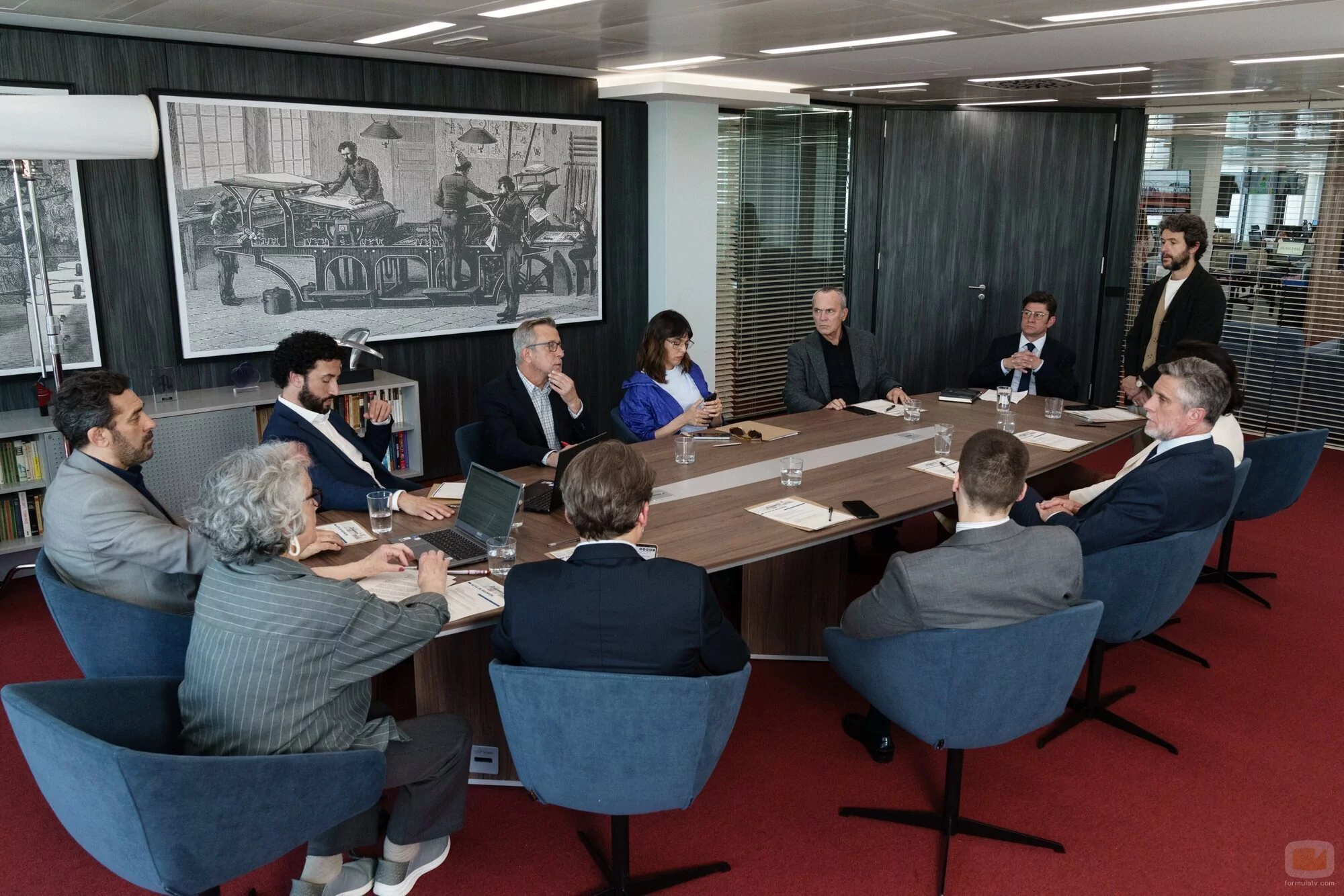 Diego Martín, Belén Cuesta y José Coronado aparecen en una foto del capítulo 1x03 de 'Legado' con fecha de estreno el Viernes, 16 de Mayo de 2025.