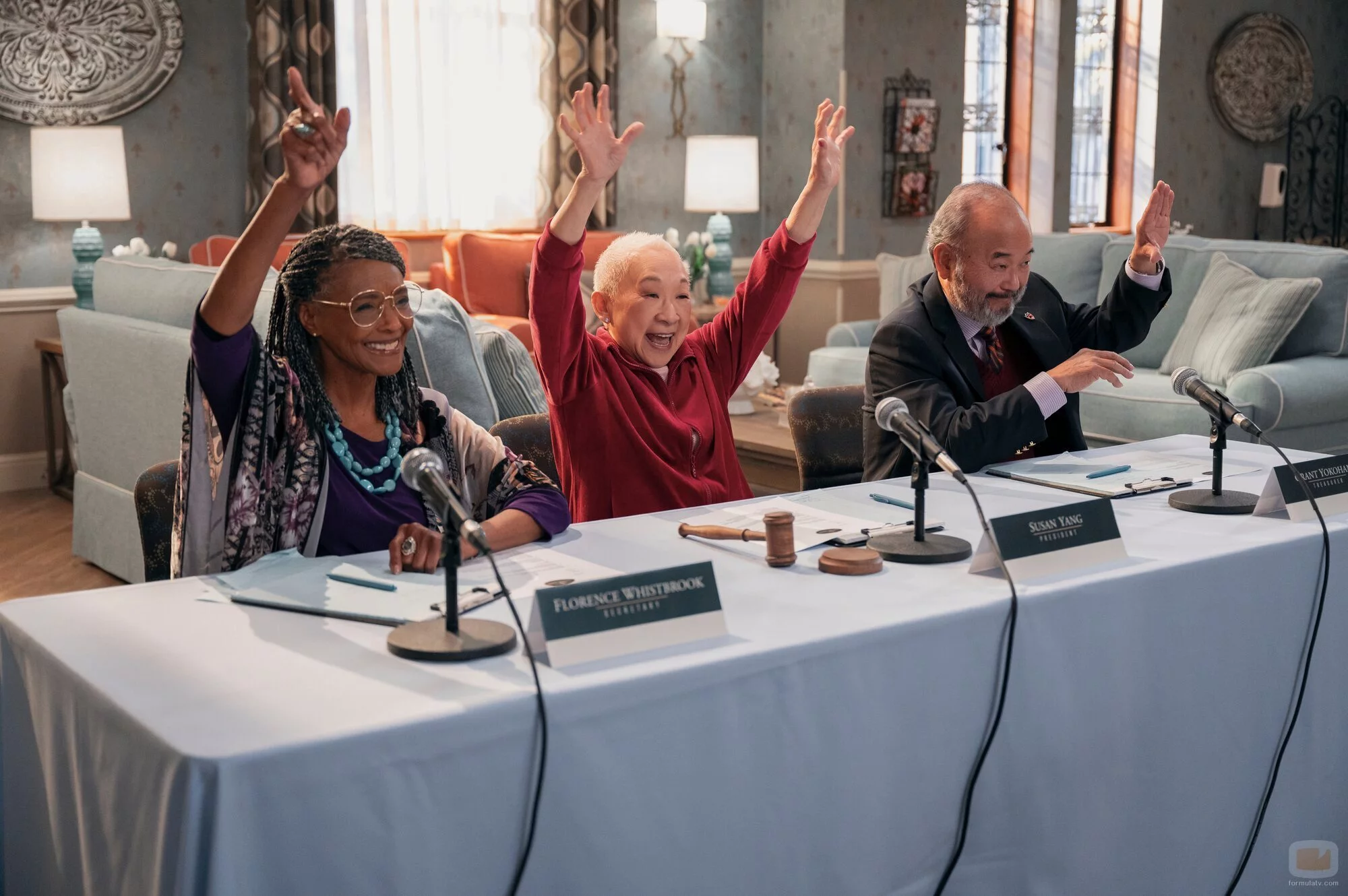 Clyde Kusatsu, Margaret Avery y Lori Tan Chinn aparecen en una foto del episodio 'El curioso incidente del perro en la clase de pintura' de 'Un hombre infiltrado'.