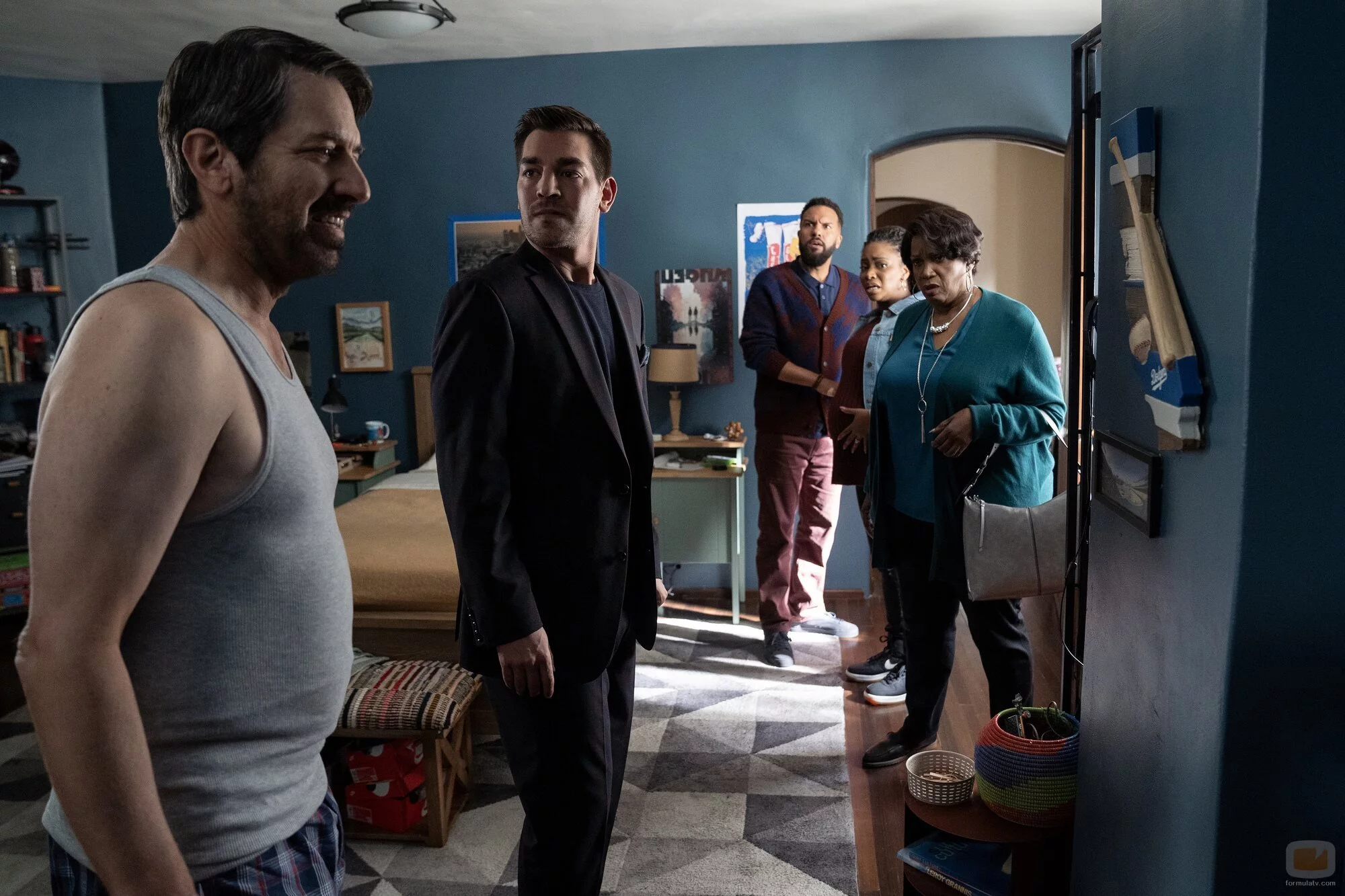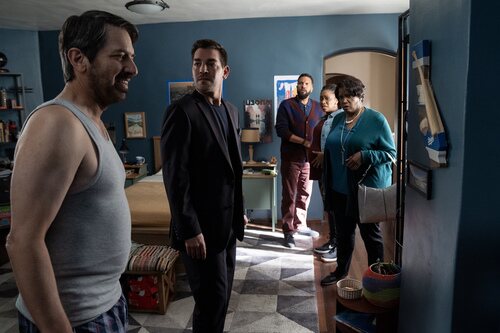 Teyonah Parris, Matt Rogers, O-T Fagbenle y Ray Romano aparecen en una foto del capítulo 'Problemas de base' de la serie 'Fachadas'.