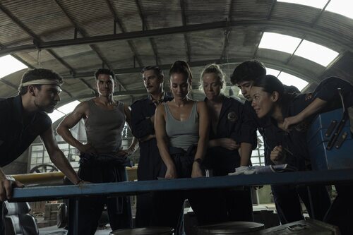 Antonio Pagudo, Ainhoa Santamaría, Saibon Wang, Silvia Alonso y Álex González aparecen en una imagen del capítulo 'Tú y yo a la fiesta' de 'Ladrones: la tiara de Santa Águeda'.