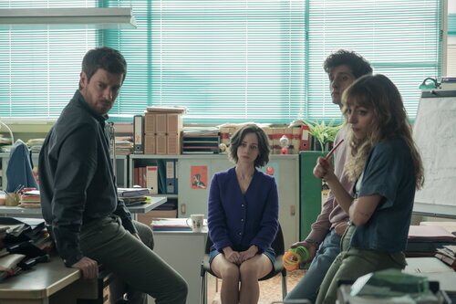 Carol Rovira, Daniel Ibáñez, Elena Rivera y Manu Baqueiro aparecen en una imagen del episodio 'Capítulo 6' de la serie 'Perdiendo el juicio'.