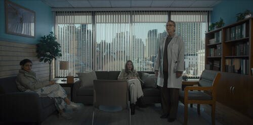 Hope Davis, Maria Dizzia y Ava Lalezarzadeh aparecen en una imagen promocional del episodio 1x09 de la serie 'Before'.