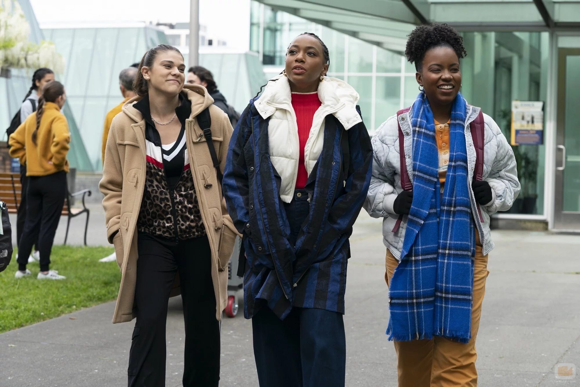 Alyah Chanelle Scott, Pauline Chalamet y Renika Williams aparecen en una imagen del episodio 2x01 de la serie 'The Sex Lives of College Girls'.
