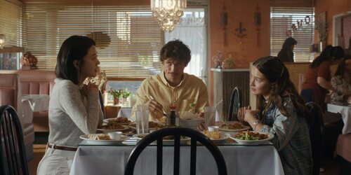 Charles Melton, Cailee Spaeny y Seoyeon Jang aparecen en una imagen promocional del capítulo 2x03 de la serie 'Bronca'.