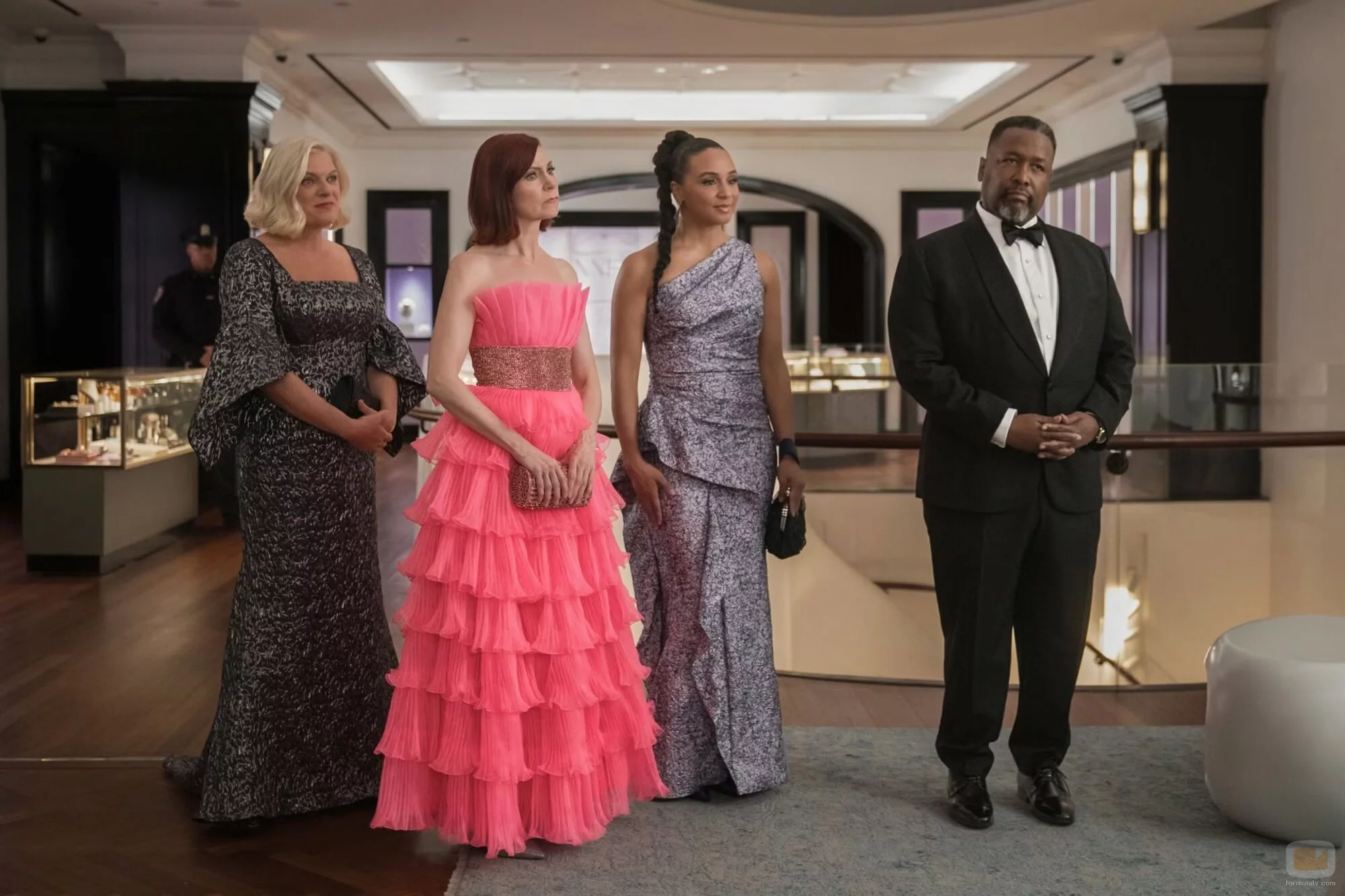 Carrie Preston, Wendell Pierce, Molly Price y Carra Patterson aparecen en una foto del episodio 'Los diamantes son para Elsbeth' de 'Elsbeth'.