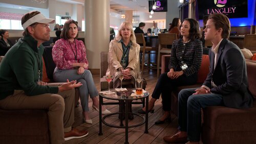 John Owen Lowe, Rob Lowe, Lily Sullivan, Jae Suh Park y Wendi McLendon-Covey aparecen en una foto del capítulo 2x07 de 'Unstable'.
