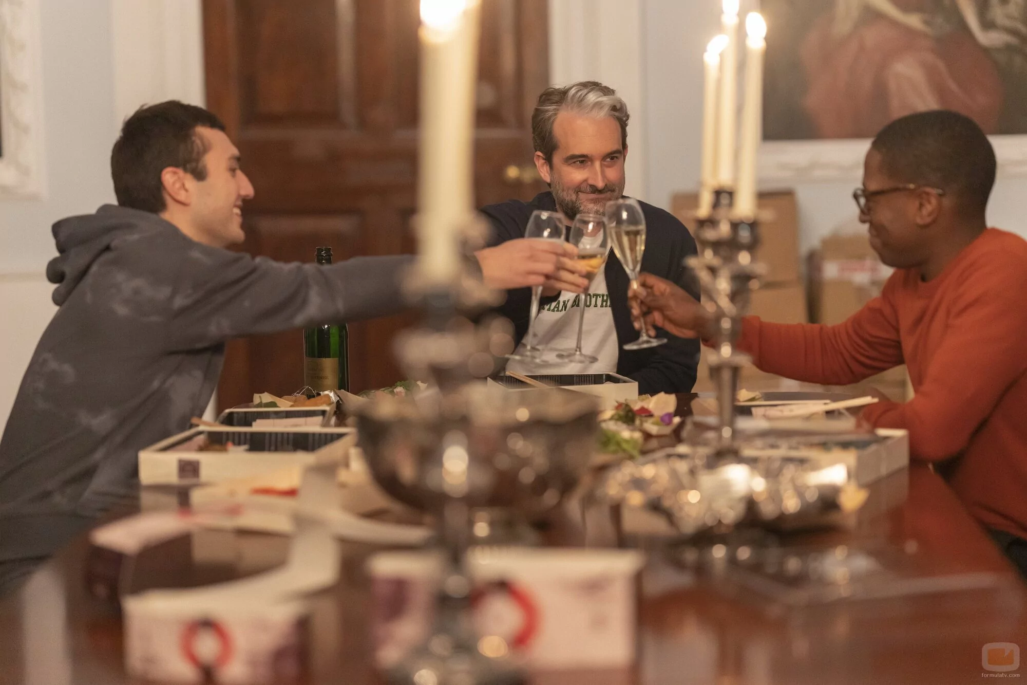 Sonny Poon Tip, Jay Duplass y David Jonsson aparecen en una imagen promocional del episodio 2x08 de 'Industry'.