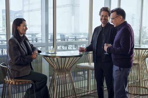 Sian Clifford, Rob Lowe y Fred Armisen aparecen en una imagen del episodio 2x08 de 'Inestable' con fecha de estreno el Jueves, 01 de Agosto de 2024.
