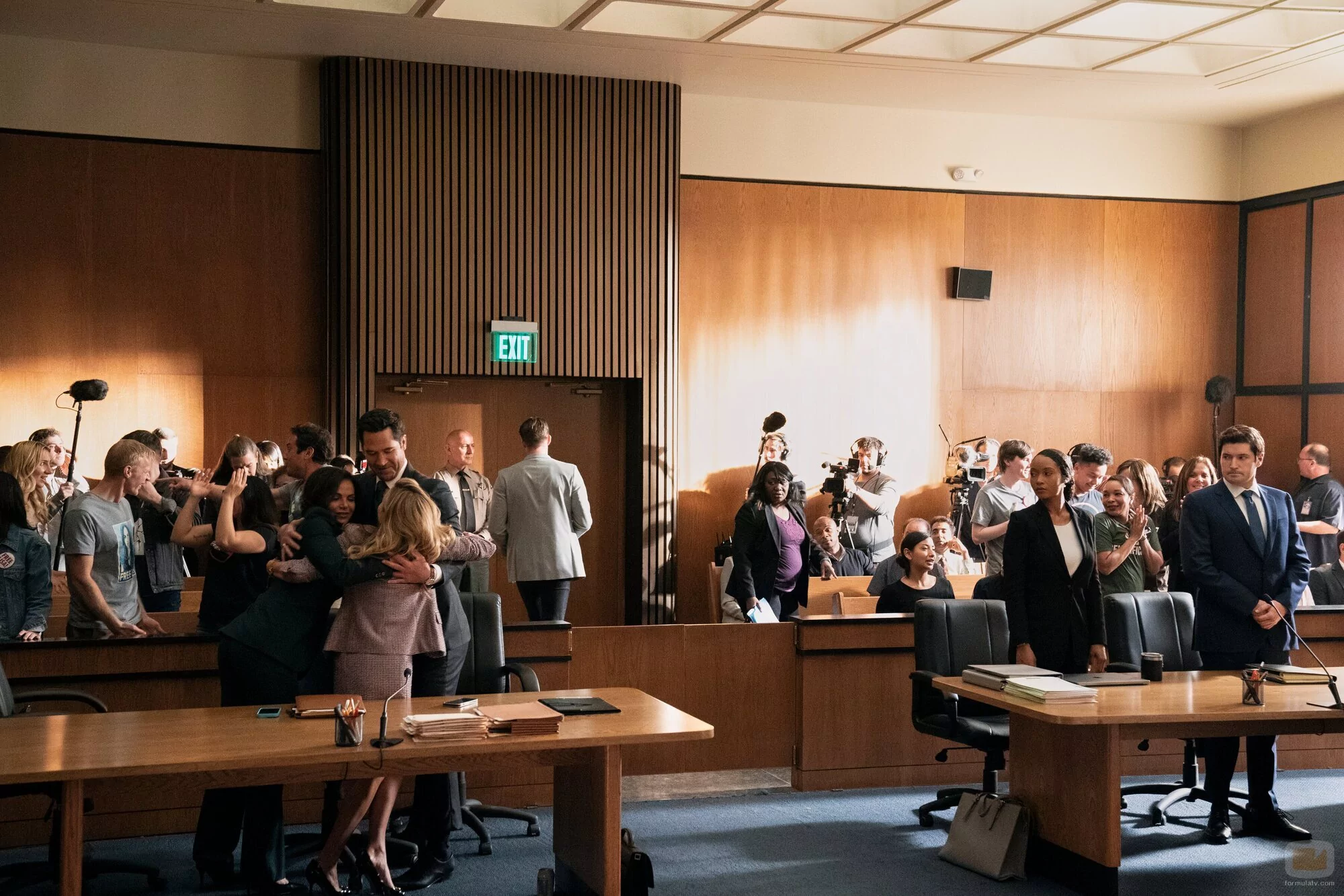 Manuel Garcia-Rulfo, Becki Newton y Yaya DaCosta aparecen en una imagen del capítulo 2x10 de la serie 'The Lincoln Lawyer'.
