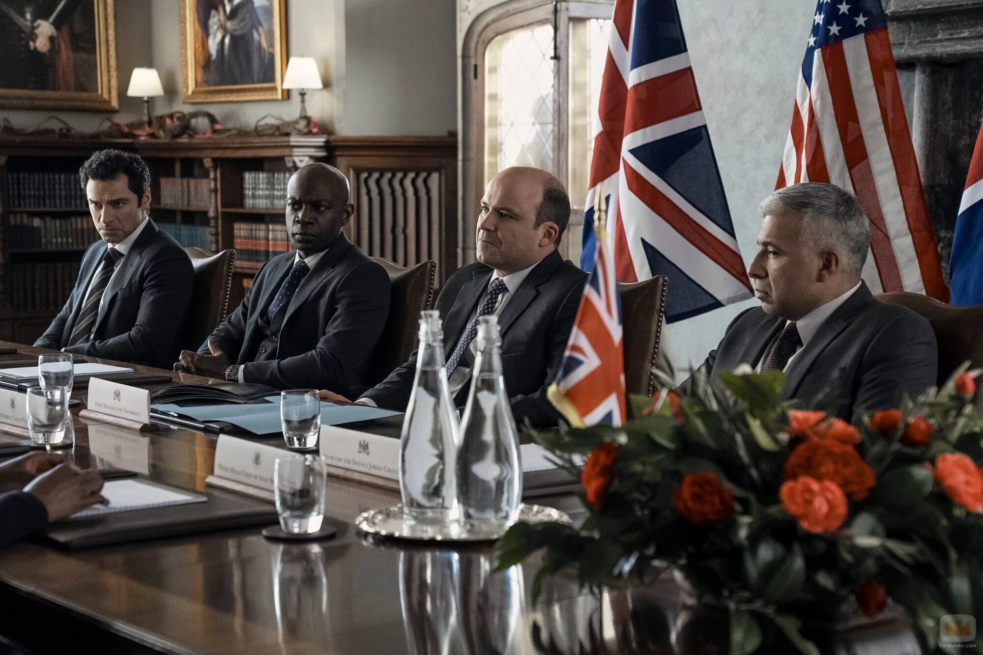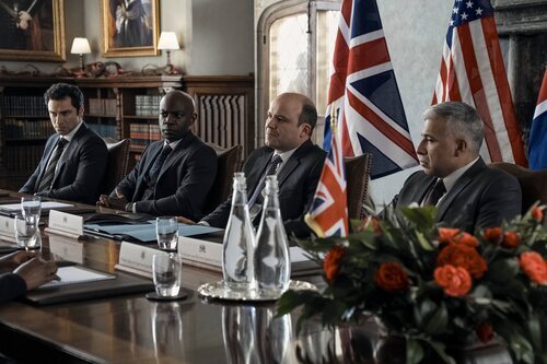 Rory Kinnear, Aidan Turner y David Gyasi aparecen en una imagen promocional del capítulo 3x08 de 'La diplomática'.