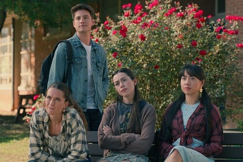 Carson Rowland, Harlan Drum y Anneliese Judge aparecen en una foto del capítulo 'El teléfono estropeado' de la serie 'Dulces Magnolias'.