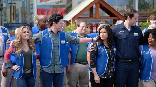 Kelly Stables, Ben Feldman, Carla Renata, Jon Barinholtz y America Ferrera aparecen en una escena promocional del capítulo 'Consecuencias' de 'Superstore'.
