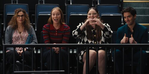 Paul W. Downs, Megan Stalter, Michaela Watkins y Hannah Einbinder aparecen en una escena promocional del capítulo 4x05 de la serie 'Hacks'.