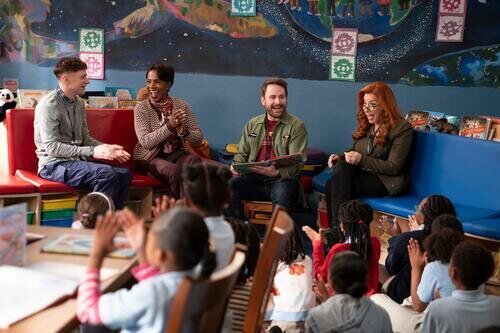 Charlie Day, Lisa Ann Walter, Chris Perfetti y Sheryl Lee Ralph aparecen en una imagen del capítulo 4x09 de la serie 'Colegio Abbott'.