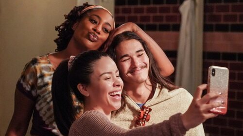 Cierra Ramirez, Zuri Adele y Booboo Stewart aparecen en una foto promocional del capítulo 4x12 de 'Good Trouble'.