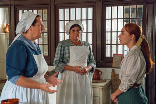 Teresa Quintero, Sara Font y Carmen Flores aparecen en una imagen promocional del capítulo 'Miércoles 24 de septiembre de 2025' de 'La Promessa'.