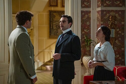 Luis Maesso, Guillermo Serrano y Marta Costa aparecen en una escena del capítulo 'Lunes 10 de noviembre de 2025' de la serie 'La Promessa'.