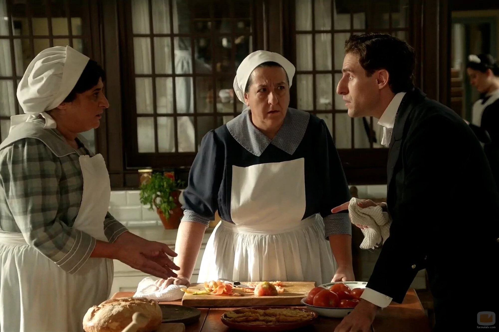 Teresa Quintero, Carmen Flores y Enrique Fortún aparecen en una foto del capítulo 'Martes 18 de noviembre de 2025' de la serie 'La Promessa'.