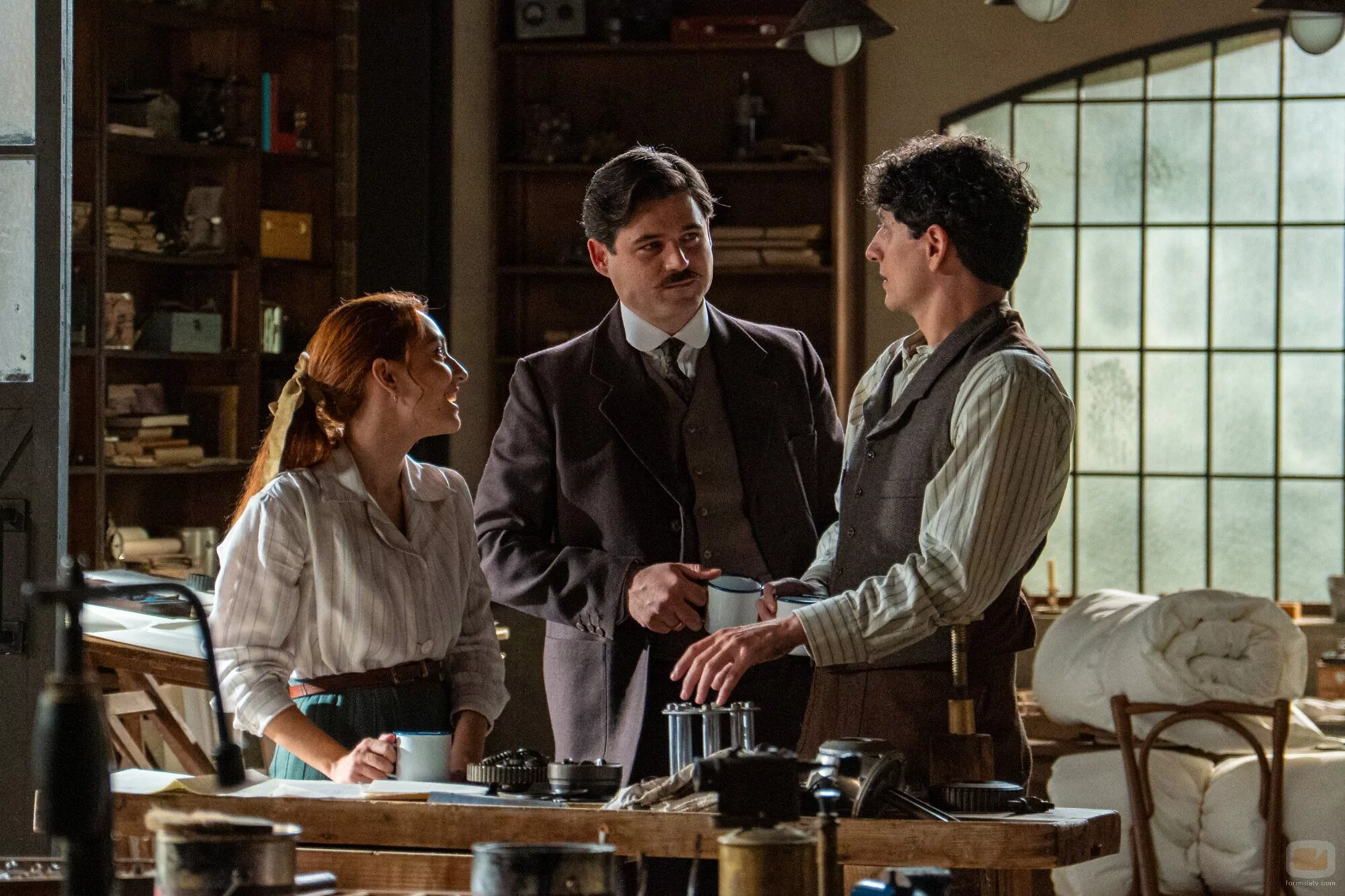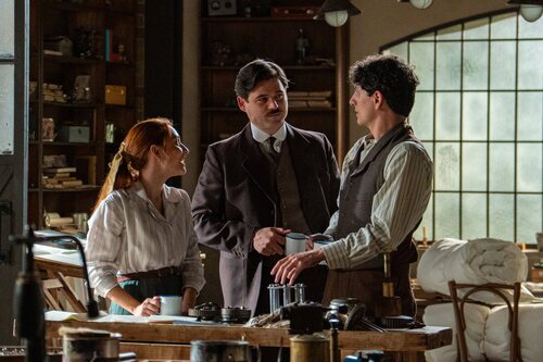 Arturo García Sancho, Álvaro Quintana y Sara Font aparecen en una imagen promocional del episodio 'Jueves 4 de diciembre de 2025' de la serie 'La Promessa'.