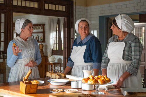 Marga Martínez, Teresa Quintero y Carmen Flores aparecen en una escena del episodio 'Martes 9 de diciembre de 2025' de 'La Promessa'.