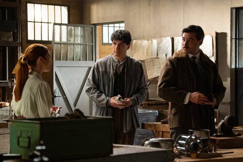 Álvaro Quintana, Arturo García Sancho y Sara Font aparecen en una imagen del episodio 4x239 de la serie 'La promesa'.