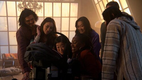 Tommy Martinez, Zuri Adele, Sherry Cola, Kara Wang y Priscilla Quintana aparecen en una foto del episodio 5x01 de la serie 'Good Trouble'.