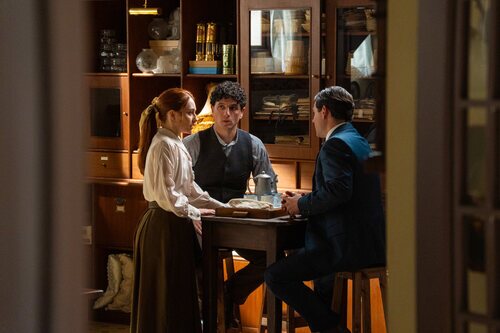 Arturo García Sancho, Sara Font y Álvaro Quintana aparecen en una escena promocional del episodio 'Jueves 29 de enero de 2026' de 'La Promessa'.
