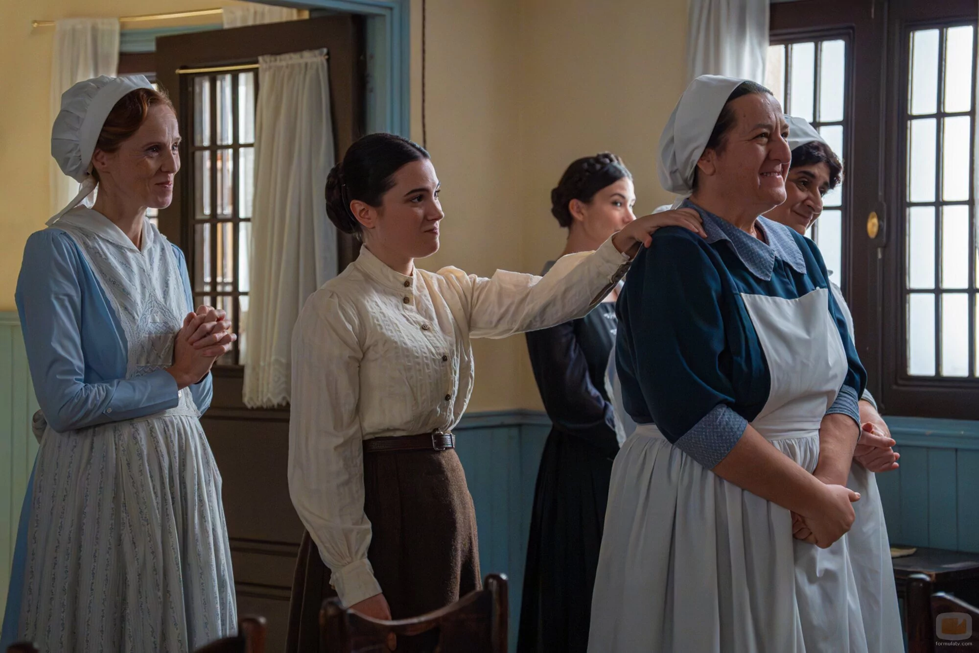 Andrea Del Río, Carmen Flores, María Castro, Teresa Quintero y Laura Lafuente aparecen en una imagen del capítulo 5x40 de la serie 'La promesa'.