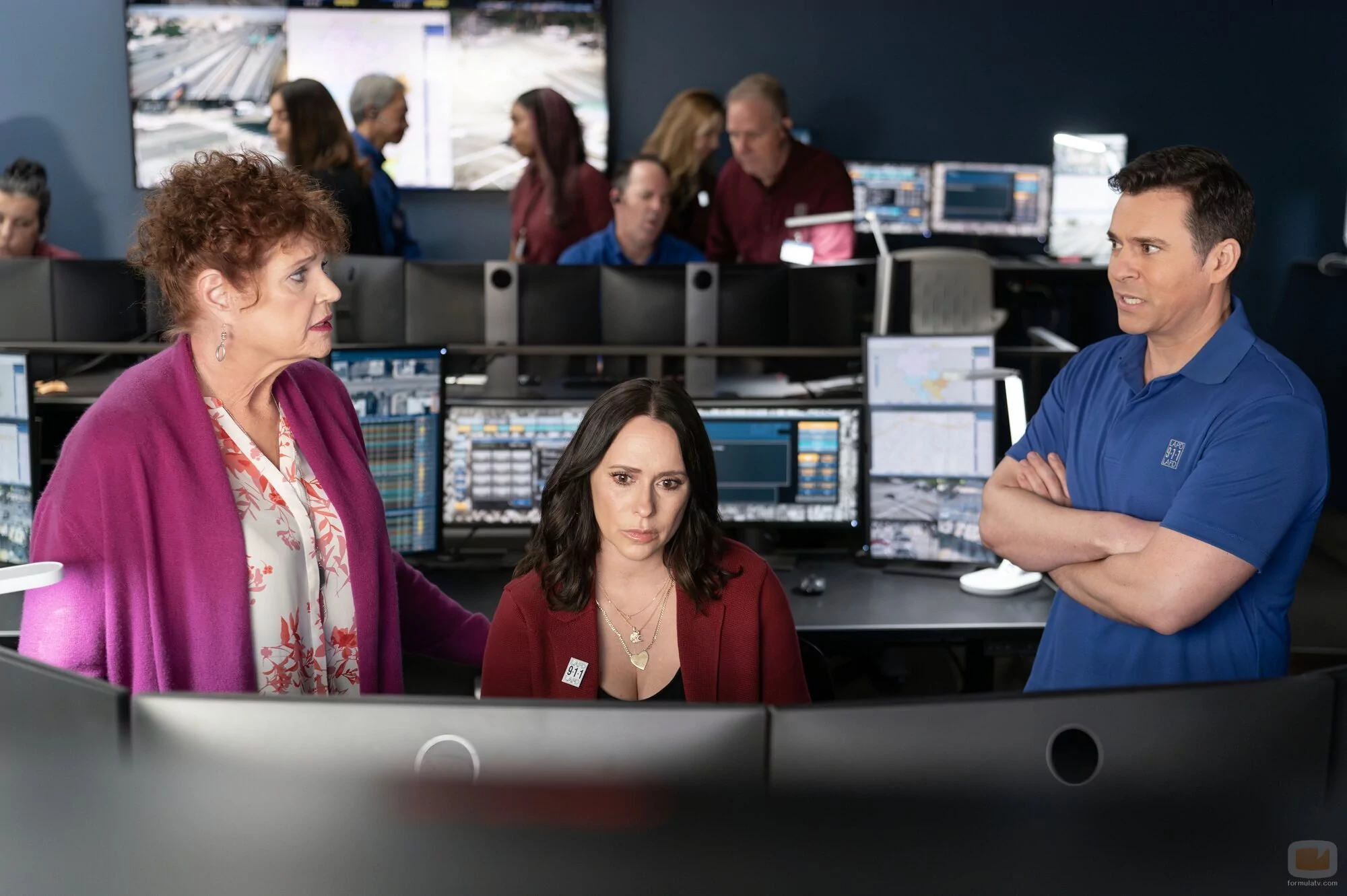 Jennifer Love Hewitt, Bryan Safi y Debra Christofferson aparecen en una foto del capítulo 'Abandon Ships' de '911'.