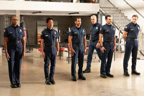 Aisha Hinds, Kenneth Choi, Oliver Stark y Ryan Guzman aparecen en una imagen promocional del episodio 8x01 de la serie '9-1-1'.