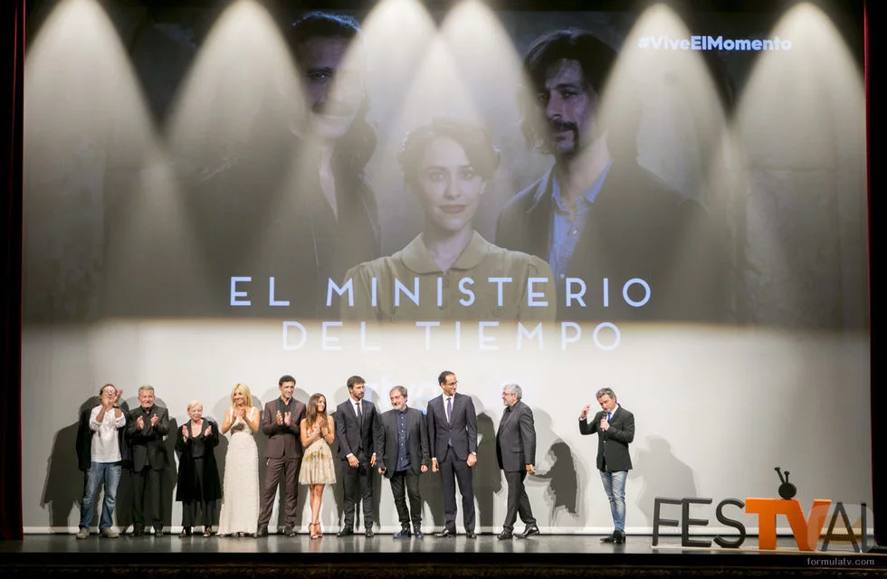 Actores de 'El Ministerio del Tiempo' con Javier Olivares en el escenario del FesTVal de Vitoria