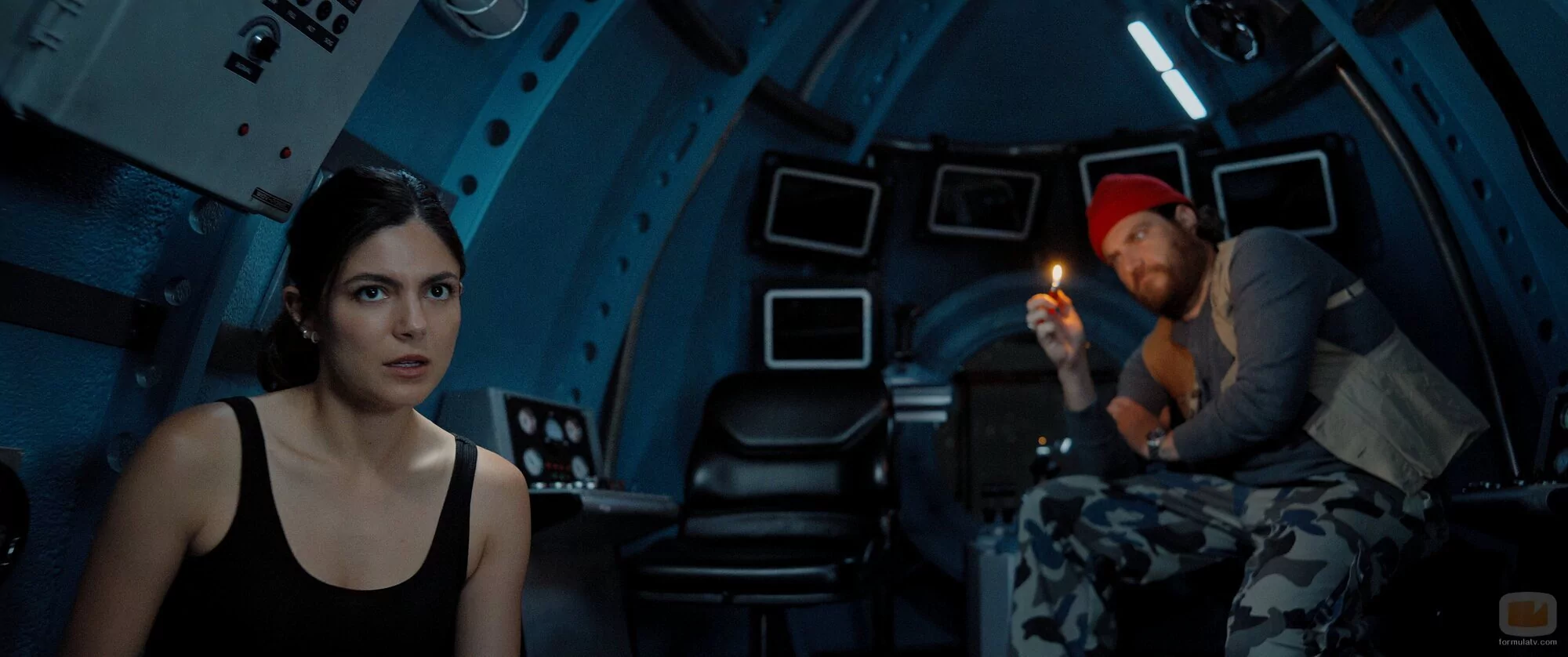 Adam Pally y Monica Barbaro aparecen en una imagen del capítulo 2x06 de 'Fubar', la serie de televisión de Netflix.