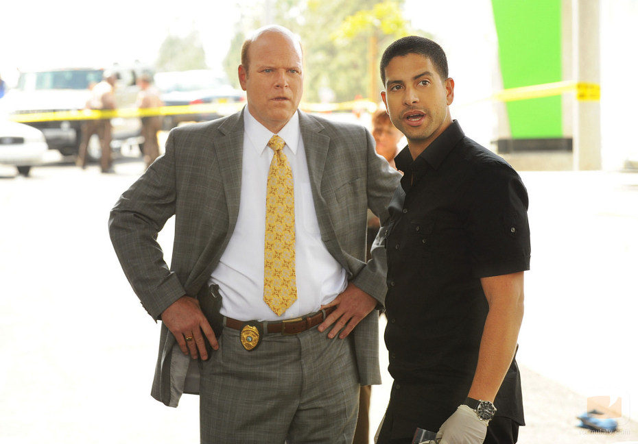 El actor Adam Rodríguez, junto a su jefe en la ficción, en 'Jugarse el resto' de la serie 'CSI: Miami'.