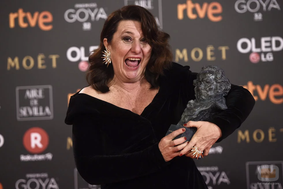 Adelfa Calvo posa con el premio a Mejor Actriz de Reparto en los Goya 2018