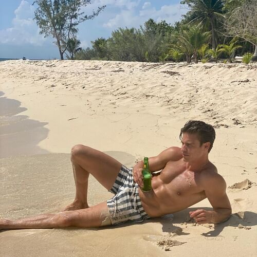 El actor de 'El secreto de Puente Viejo' luce torso desnudo, posando en bañador, mientras disfruta de una jornada en la playa.
