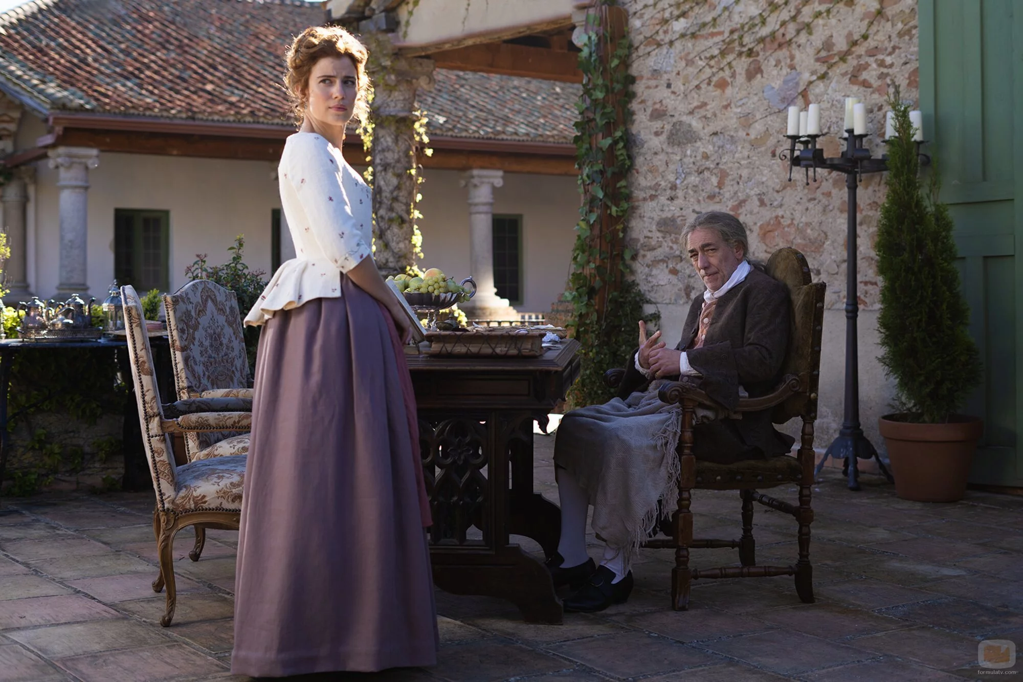 Escena de 'Valle Salvaje', la serie diaria de RTVE, en la que la protagonista, Adriana, aparece junto a su padre Evaristo.