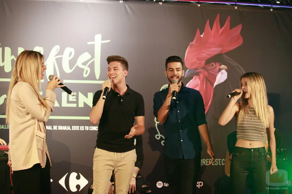 Mimi, Raoul, Nerea y Agoney, exconcursantes de 'OT 2017', cantando durante la presentación de la III edición del Carrefest Music Talent 2018.