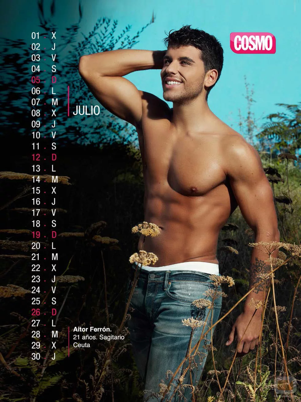 El joven de 21 años, natural de Ceuta, luce cuerpazo, sonrisa y ojazos en el mes de julio para el calendario de Cosmo.