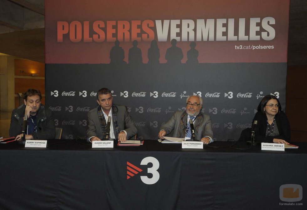 Albert Espinosa, Eugeni Sallent, Julio Fernández y Susana Jiménez en la rueda de prensa de la segunda temporada de 'Pulseras rojas' en TVC.