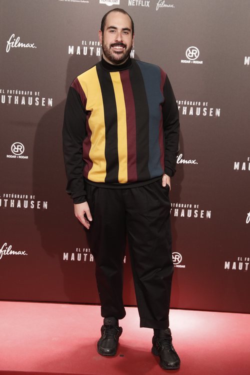 El actor Alberto Velasco, que ha participado en 'Vis a vis', 'Señoras del (h)AMPA' o 'Madres', posa frente a la prensa en una premiere.