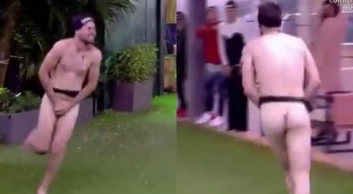 El concursante Alejandro Albalá cumple su promesa por salvarse de la expulsión frente a Sofía Suescun y corre desnudo por el jardín ante la mirada atenta de sus compañeros y de la audiencia de 'GH Dúo'.