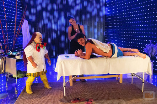La masajista Patricia y el payaso enano son los "masajistas" de Aless.