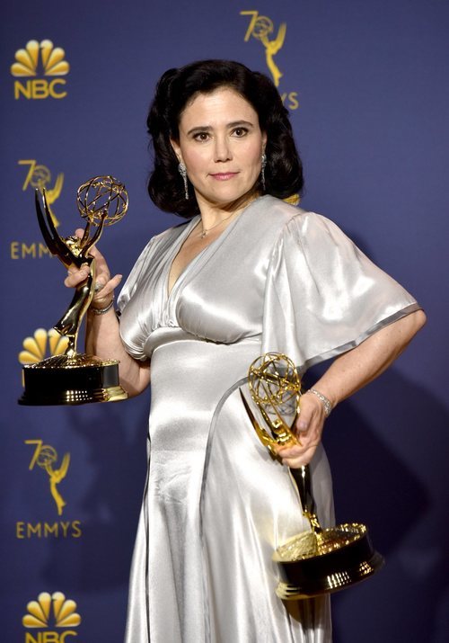 La actriz ganó el premio a mejor actriz de reparto en comedia por 'The Marvelous Ms. Maisel', pero ya había ganado otro como mejor actriz de doblaje por hacer la voz de Lois Griffin, entre otros personajes, en 'Padre de familia', por lo que posa aquí con ambos.