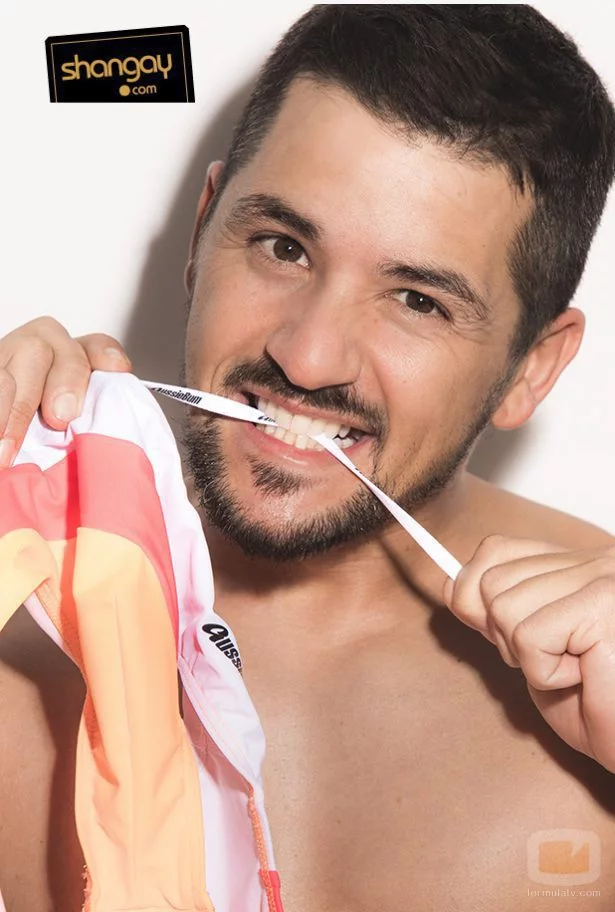 El exconcursante de 'Operación Triunfo', posa mordiendo un cordón en una sexy sesión de fotos para la revista gay Shangay.