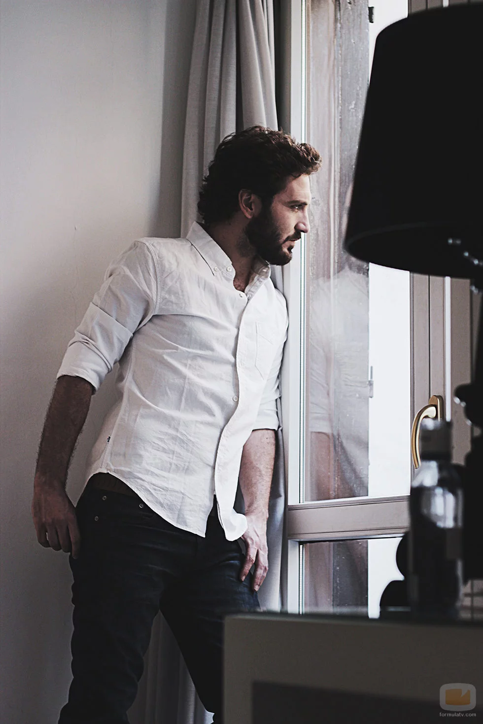 El actor mira por la ventana en una sesión fotográfica para la revista Vim Magazine.